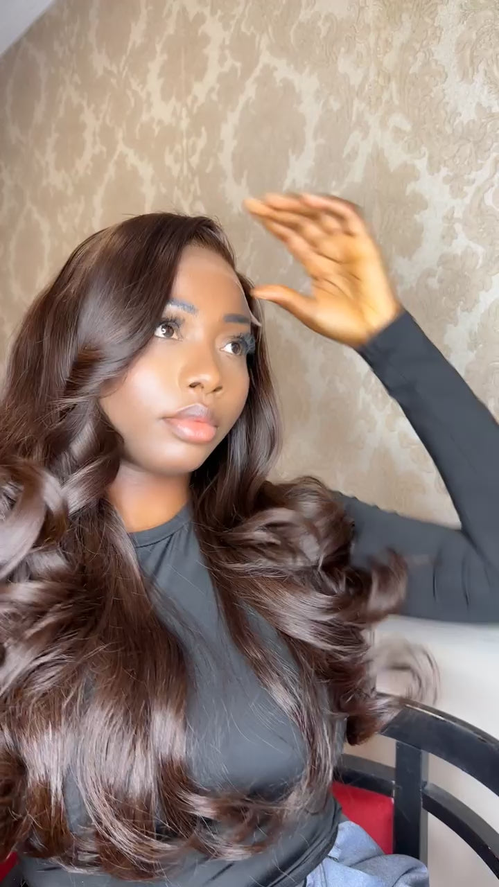 Premium raw donor hair in a rich mocha brown tone.