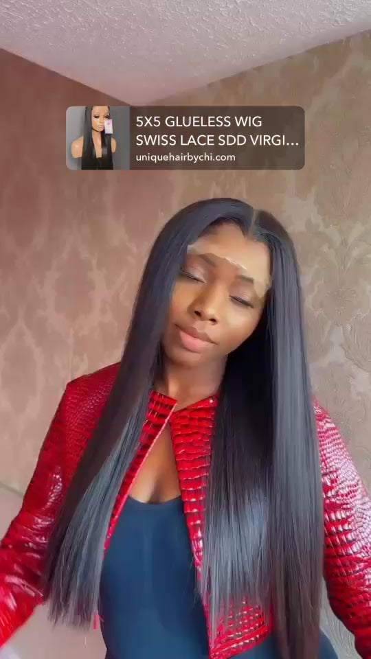5X5 GLUELESS WIG SWISS LACE SDD VIRGIN BUNDLES 350GRAMS
